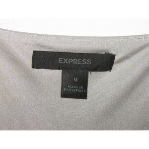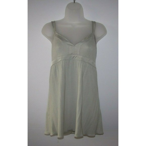 Very pretty, light gray, fitted bodice with a flowy bottom, nice trim.