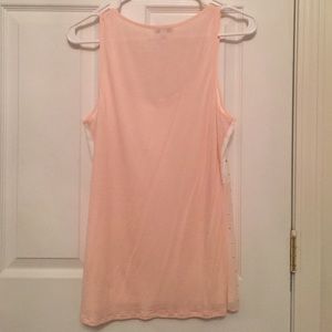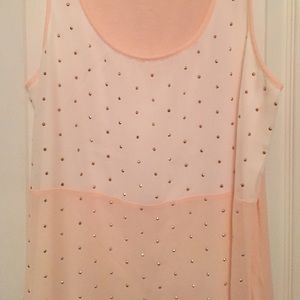 Express tank top / Cream & Pink with a semi-sheer overlay featuring pink sequin embellishments. Front lining is 100% Polyester & the back is 100% Rayon