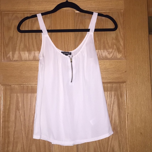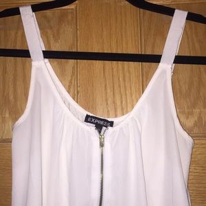 Cute off white colored tank top from Express with gold zipper detail! Great for layering with cardigans for fall.