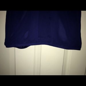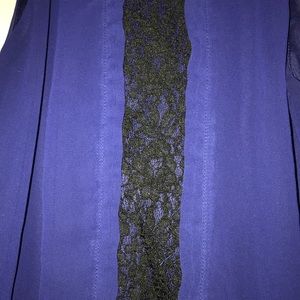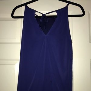 Express tank top. Features: royal blue with black lace detail down the middle front, has elastic at the bottom of the shirt which gives the top a bubble type look, ties at the top back of the neck, back of top has a v-neck. Size small. No defects, like new.
