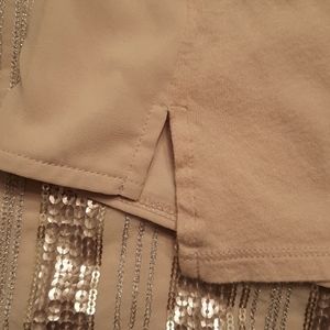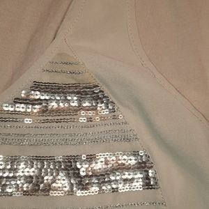Express tamk top in a soft creme color in a size small. Front has sequins and sides have a small side slit at the bottom. Made out of: front 100% poly and back 60% cotton and 40% modal and lining 100% poly. This was gently worn a few times. Just hanging around and needs to move from my closet to yours! Don't let this slip past! Comes from a smoke free home.