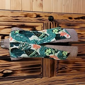 green and coral floral tank, slit open back, xs