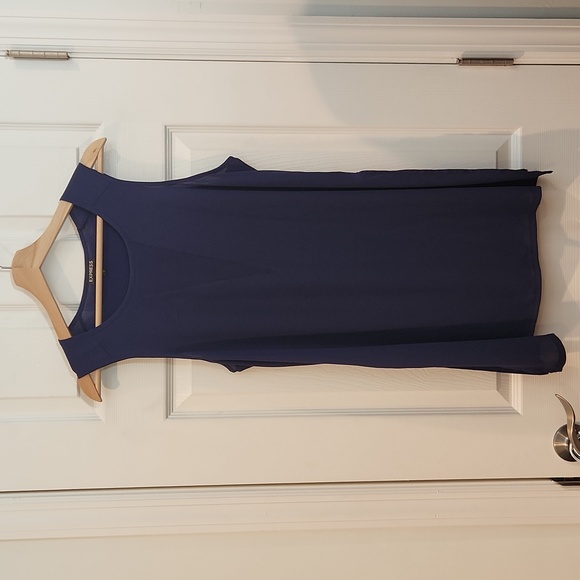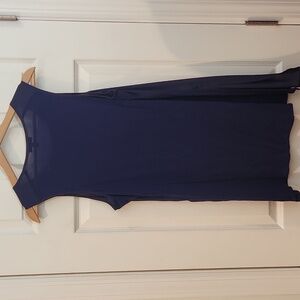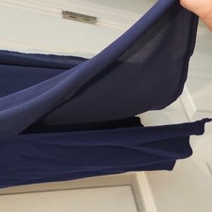 Gently used! Great condition! Tunic length with slits on side and a sheer neck line area. Navy blue.