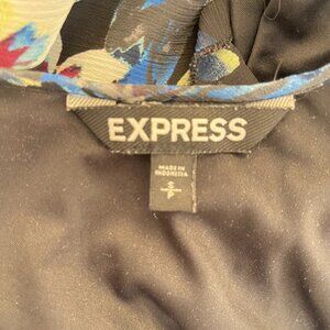 Express Tank Top Blouse Small Spaghetti Strap Black Floral Rose Flowy Swing