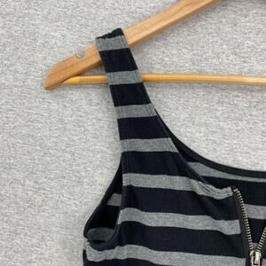 Express Tank Top Womens Small Petite Back Gray Striped 1/2 Zip Front Swing Skirt