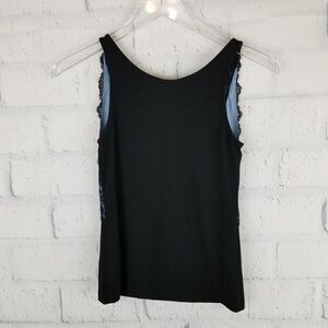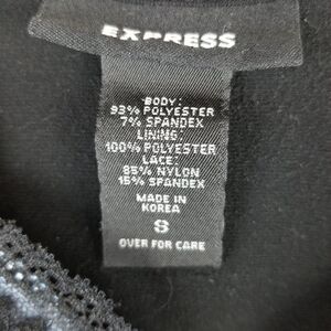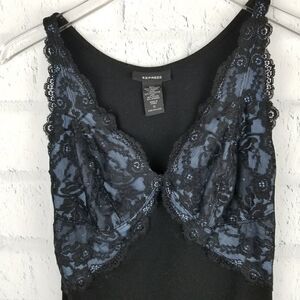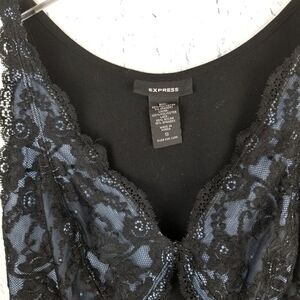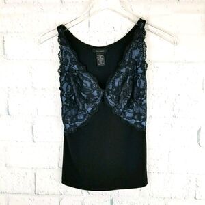 Black and blue Express tank top with lace bodice. Size S. Approximate measurements are pit to pit 14". Length from top of shoulder strap to hem is 20".