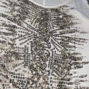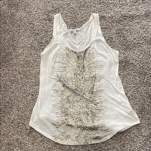 White lightweight tank by Express, has gold-ish sequin pattern on the front. Comfy fabric, good preloved condition.
