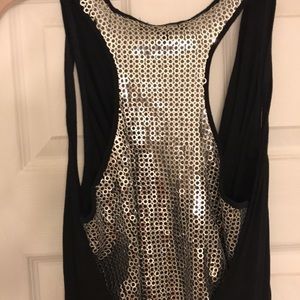 Ruched scoop neck Silver sequin type design Vaguely see through on the back sequins Fun party top!
