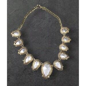 Add a touch of elegance to your outfit with this beautiful Express Tear Drop Choker Necklace. The necklace features a stunning teardrop-shaped pendant in a white and clear crystal combination, suspended from a 18-inch adjustable bar link chain with a lobster clasp closure. The gold-tone metal and unique design make this necklace a perfect accessory for any occasion, be it a Christmas gift, anniversary, or birthday.