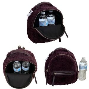 Express Teddy Fabric Plush Zip Up Purple Backpack with Adjustable Straps. New with tag. Small manufacturer mark above straps. Purple wine color with gold-tone hardware. Stylish backpack. Perfect for casual outings, date night or everyday wear. See all photos. Retails for $68.