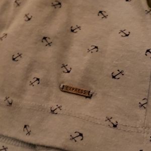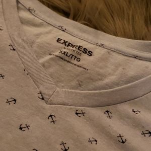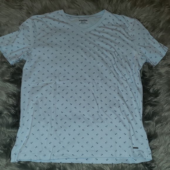 Express anchor tee. Light blue with small navy blue anchor print. Size XXL
