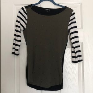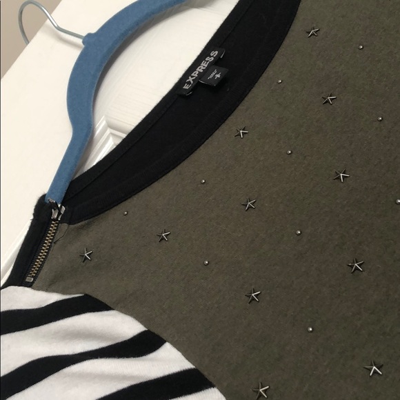 Cute Express elbow length tee with zipper detail to shoulder and metal star appliqué