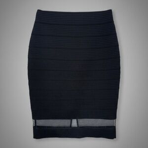 Express Textured Pencil Skirt Black Sheer Hem M
