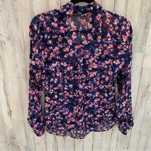 Express The Portofino Button Up Floral Sheer Top Shirt Blouse