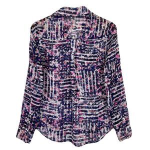 Express The Portofino Button Up Shirt XS Multicolor Geometric Roll Tab Sleeve