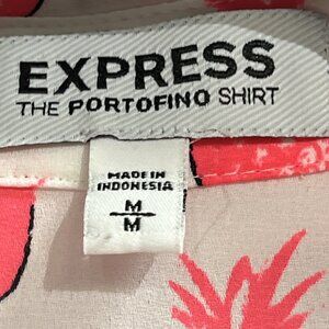 Express The Portofino Shirt Womens M White Chiffon Neon Pink Pineapple Print Resort
