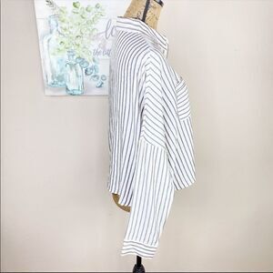 Express The Boxy Shirt Striped Button Front Shirt Blue White Gold Small