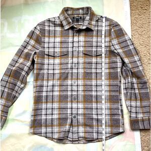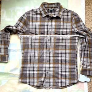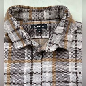 Express Thick Flannel Plaid Brown,Gray Long Sleeve Button Down Shirt Sz Small