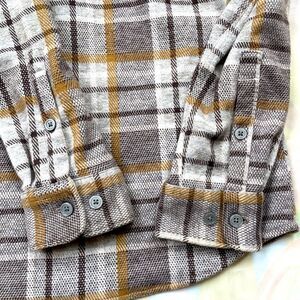 Express Thick Flannel Plaid Brown,Tan & Gray Long Sleeve Button Down Shirt Sz Small