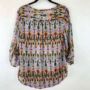 Express Tie Neck Semi Sheer Abstract Blouse Top S