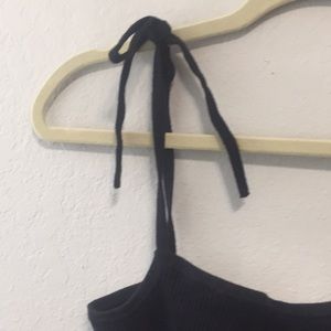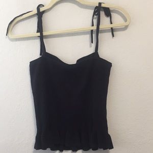 Express Tie Strap Ruffle Trim Ribbed Tank Top