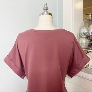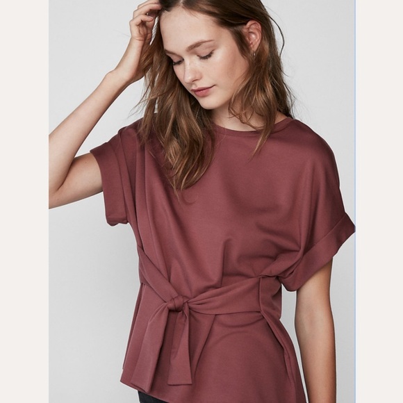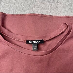 Express Pink Tie Waist Roll Sleeve Blouse in a Pink Mauve Color. Adjustable tie. Raw hem. Cuffed rolled short sleeve top. Soft and stretchy. New without tags. Size small.