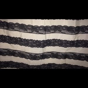 This has a silky front to the top and a cotton t shirt feel to the back of it. The pattern is black lace and not real lace. It is a size SMALL. Sorry for the wrinkles lol.