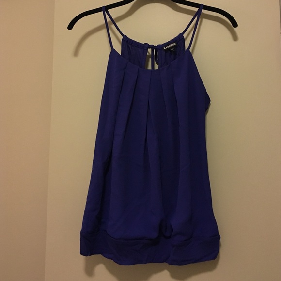 Adorable bluish-purple Express top with drawstring straps that tie at the back of the neck.