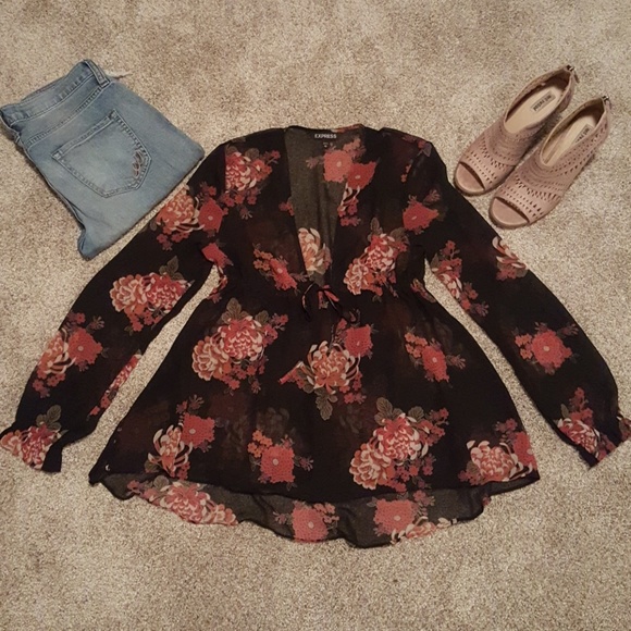 Express babydoll floral top with cute cinch details. Excellent condition!