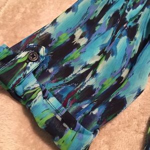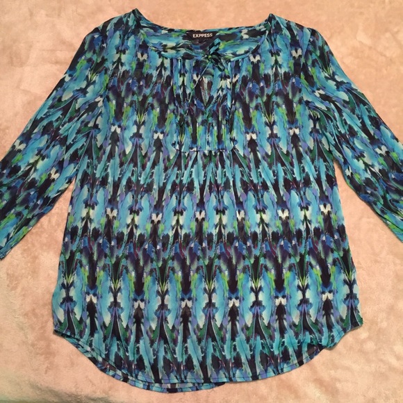 Colorful Express Blouse. Excellent used condition. Only worn a couple times. Turquoise, navy, green, white and purple. Size M.