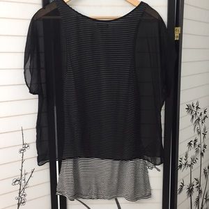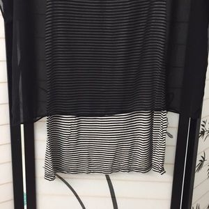 This Express top is a black and white striped tank with a shear black clover attached. Only worn once.