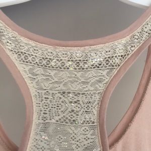 Beautiful mixed textures top. Sequins behind lace detail. Gently worn.