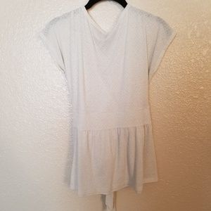 Express top with two connected straps that tie. It's an off white color with very light silver threaded in. Worn once to an event.