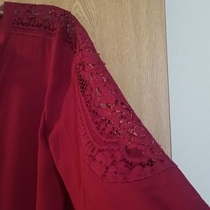 Express top with lace inset on shoulder and down each arm. It has a vneck and hidden buttons.