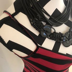 Spaghetti strapped top by Express. Red and black in color. Sequined embellished straps. Size extra small. Material is stretchy. Good condition.