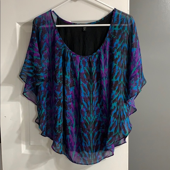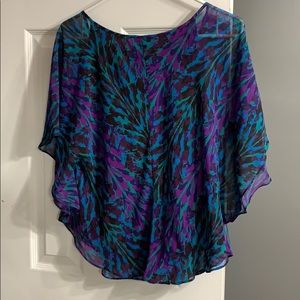 Beautiful express multicolored top. Sheer lover lay with pretty sleeves, black built in undershirt. Good used condition. Make an offer!