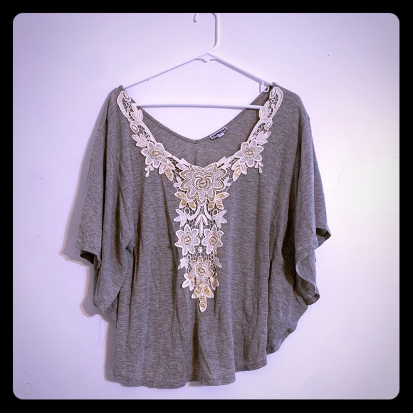 Express top, Gray with floral overlay, size M