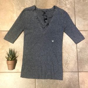Express Top • 3/4 sleeve • Color: Grey • Size: M • Low cut | V neck • Criss cross front detail *NWT*