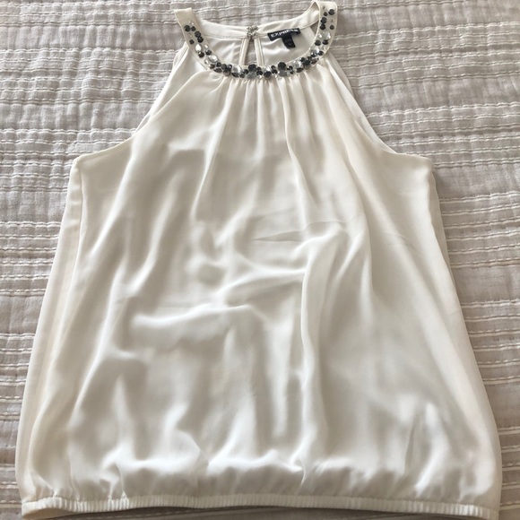 Express blouse tank top. Off white color. Fits true to size. Only worn once, small tear at neckline (see picture), easily fixable. π
