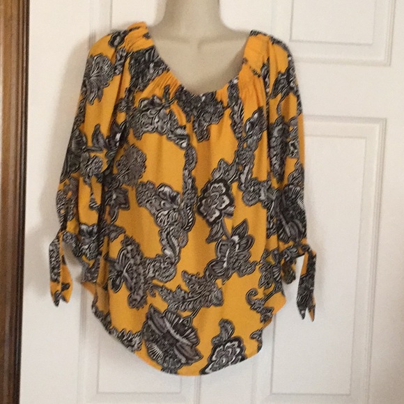 Very good condition. 22 inches from shoulder to bottom of top. 3 quarter length sleeves with ties. Very soft and light weight. Can wear off shoulder.