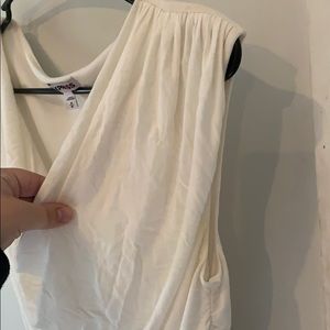 Express brand top. Slightly off white color. Gently Used. Small pink stain on tag. See pictures. Pet friendly, smoke free home!