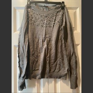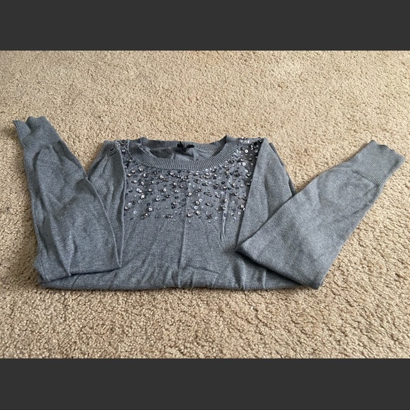 Very pretty long sleeve, I have longer hair though so it tends to get caught up in the jewels LOL! Gently worn, GUC. No flaws. Size medium. 76% cotton, 24% nylon. Message me if you have any questions, thanks for looking!