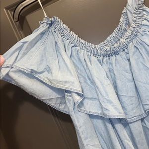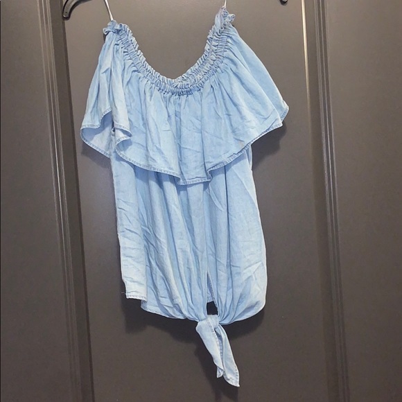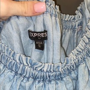 Off the shoulder denim top from express. Super cute!! Tied at the front and ruffle around top. Only worn once - too big on me.