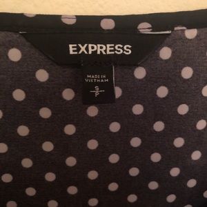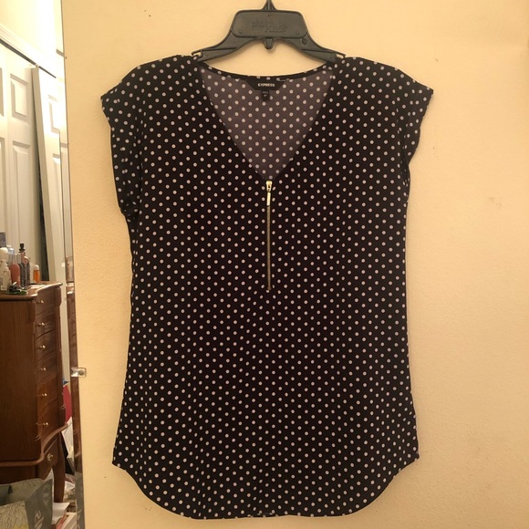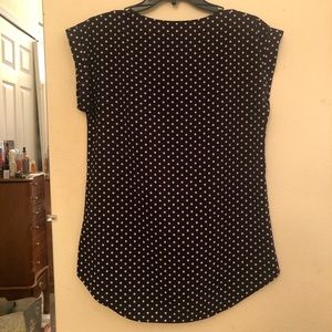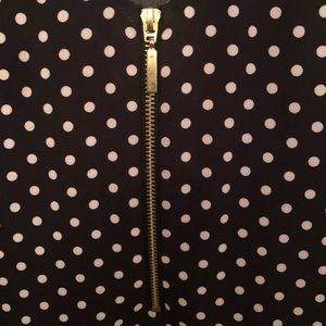 Worn only a few times, new condition! Black top with white polka dot print. Has a gold zipper down the front. Size is in small (4-6). Great attire for work!