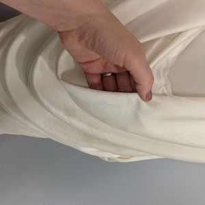 Great for an eveneing out and layoring with jacket or blazer. Soft white- almost pearl color- nice fabric- barely worn.