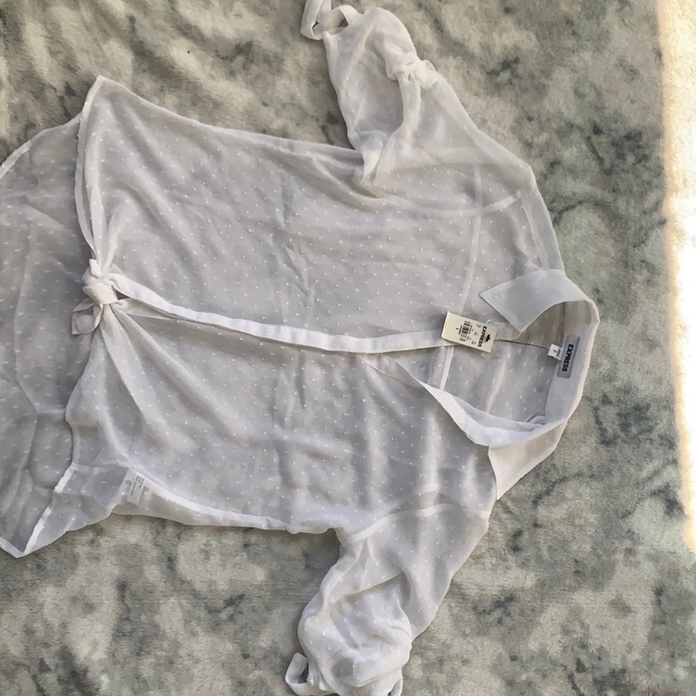 Sheer top perfect to wear for work or just a nice day out! I have never worn this shirt and it still has the tags on it.
