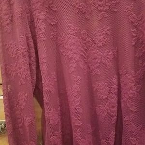 Like new condition. Worn only twice. Close up photos make color appear lighter than it is. I would call the color wine. See through.