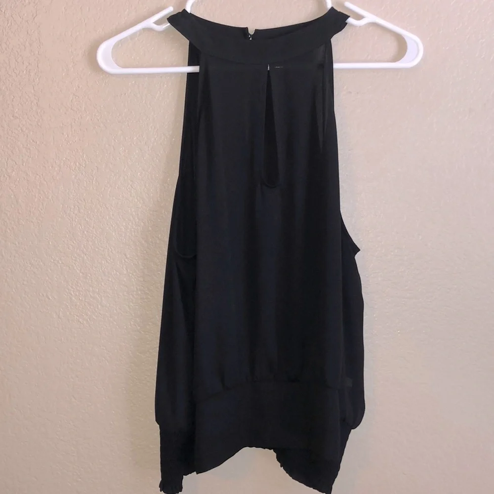 Express black dressy tank top. Worn once. Back open with buttons on top. Front has hole in middle.