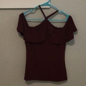 Express cold shoulder, neck strap top. New with tags. Burgundy color, size XS.