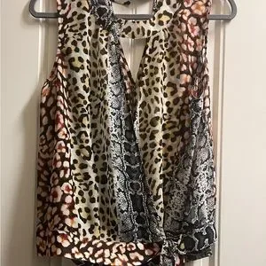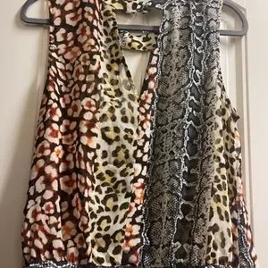 Express Leopard Print Top. Brown, Beige, White and Black.